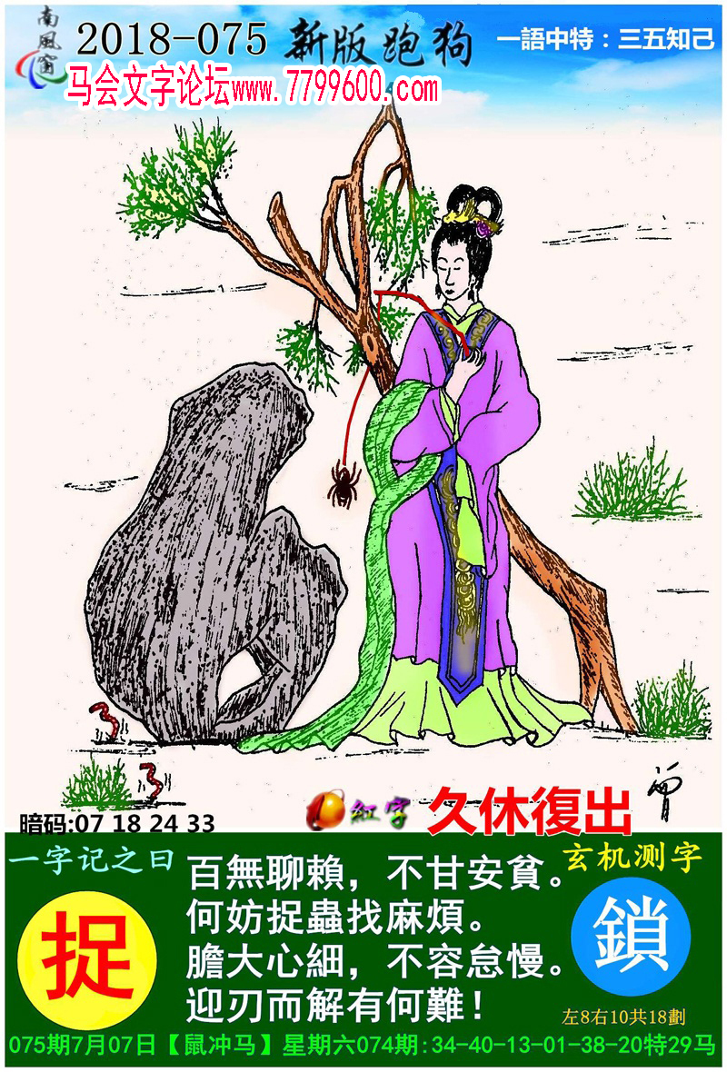 主题 : 075期:新版跑狗一字記之曰【捉】玄機測字《鎖》