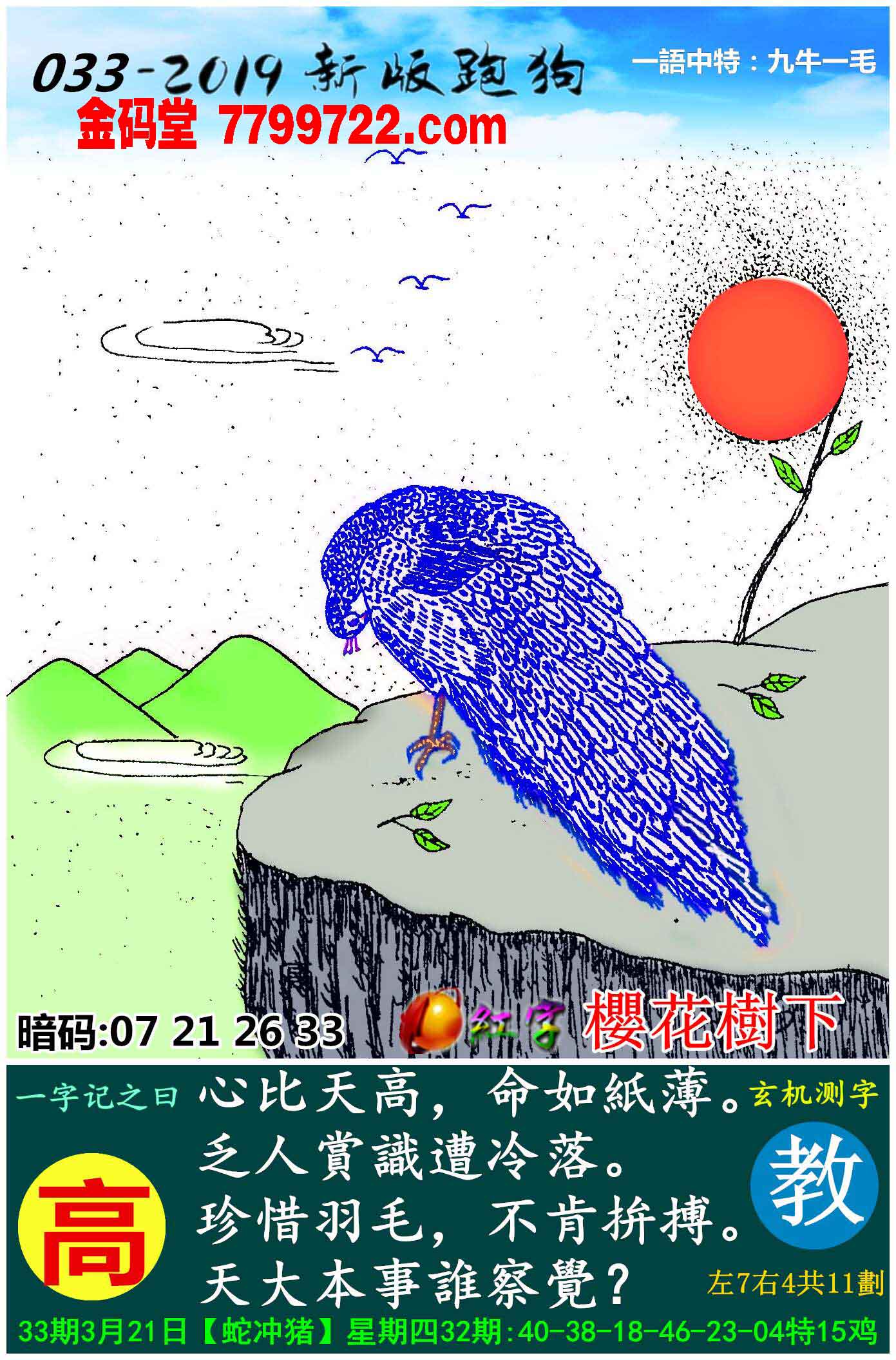 033期新版跑狗一字記之曰:【高】