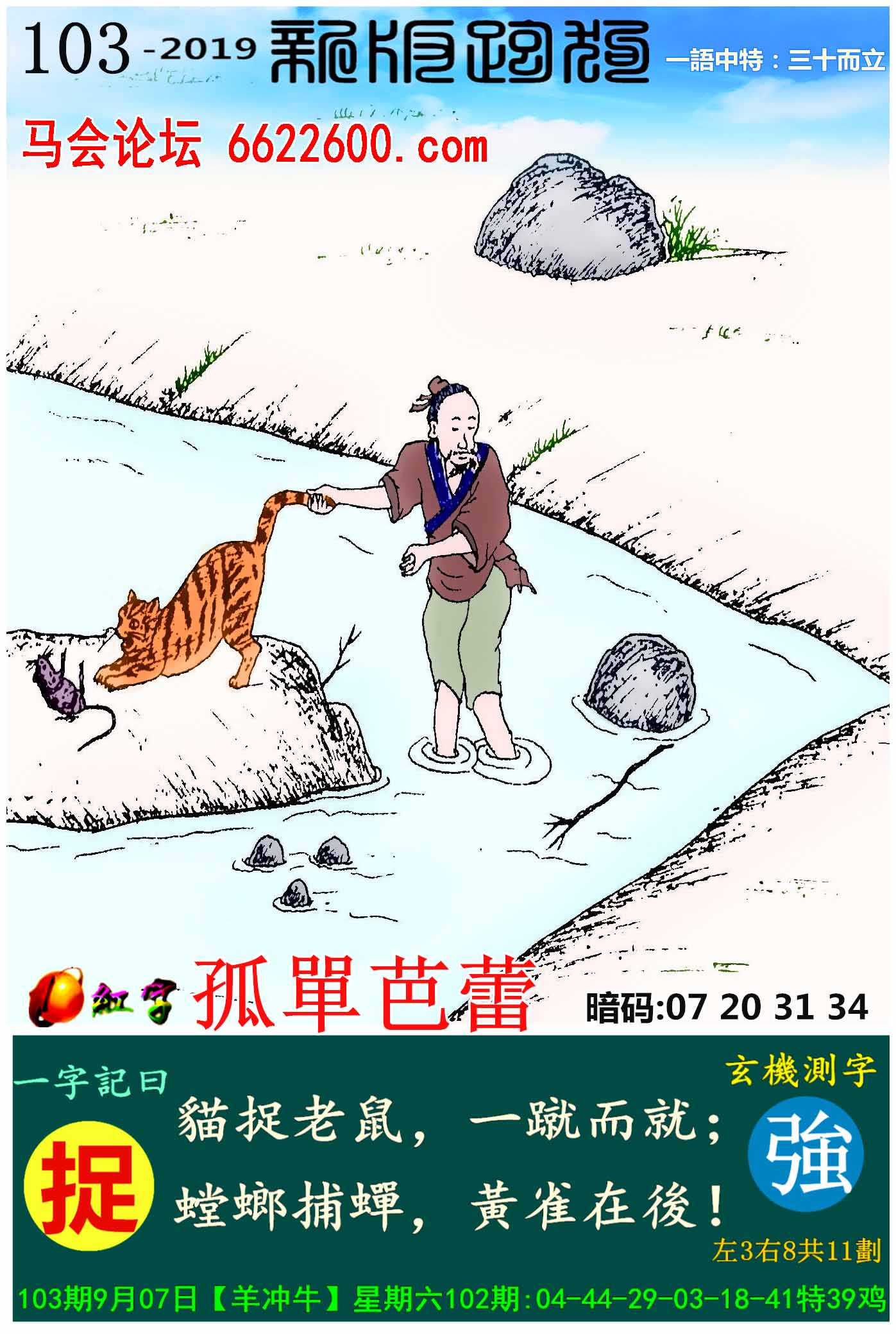 103期:新版跑狗一字記之曰【捉】玄機測字:《強》