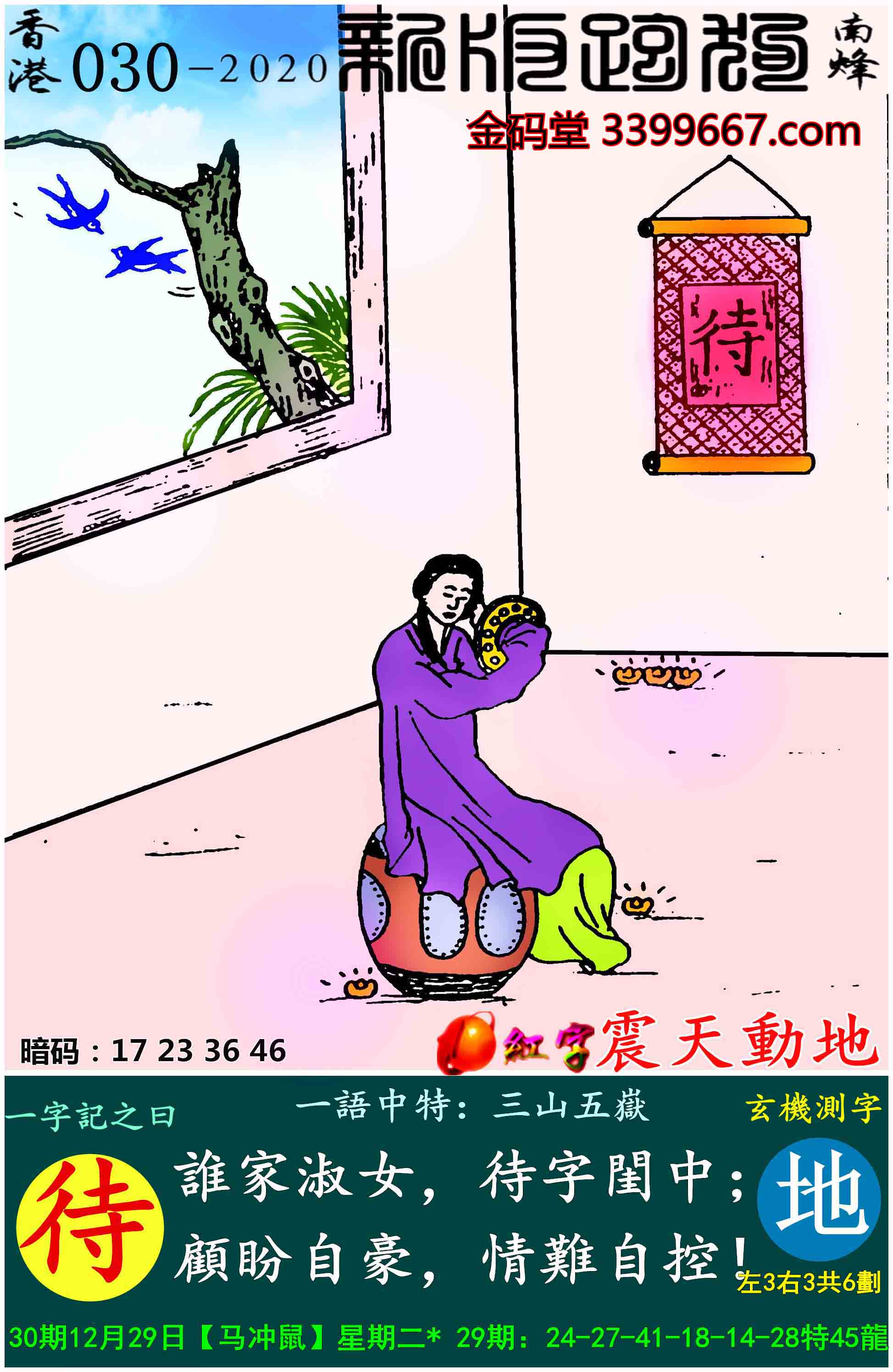 030期:新版跑狗一字記之曰【待】玄機測字:《地》