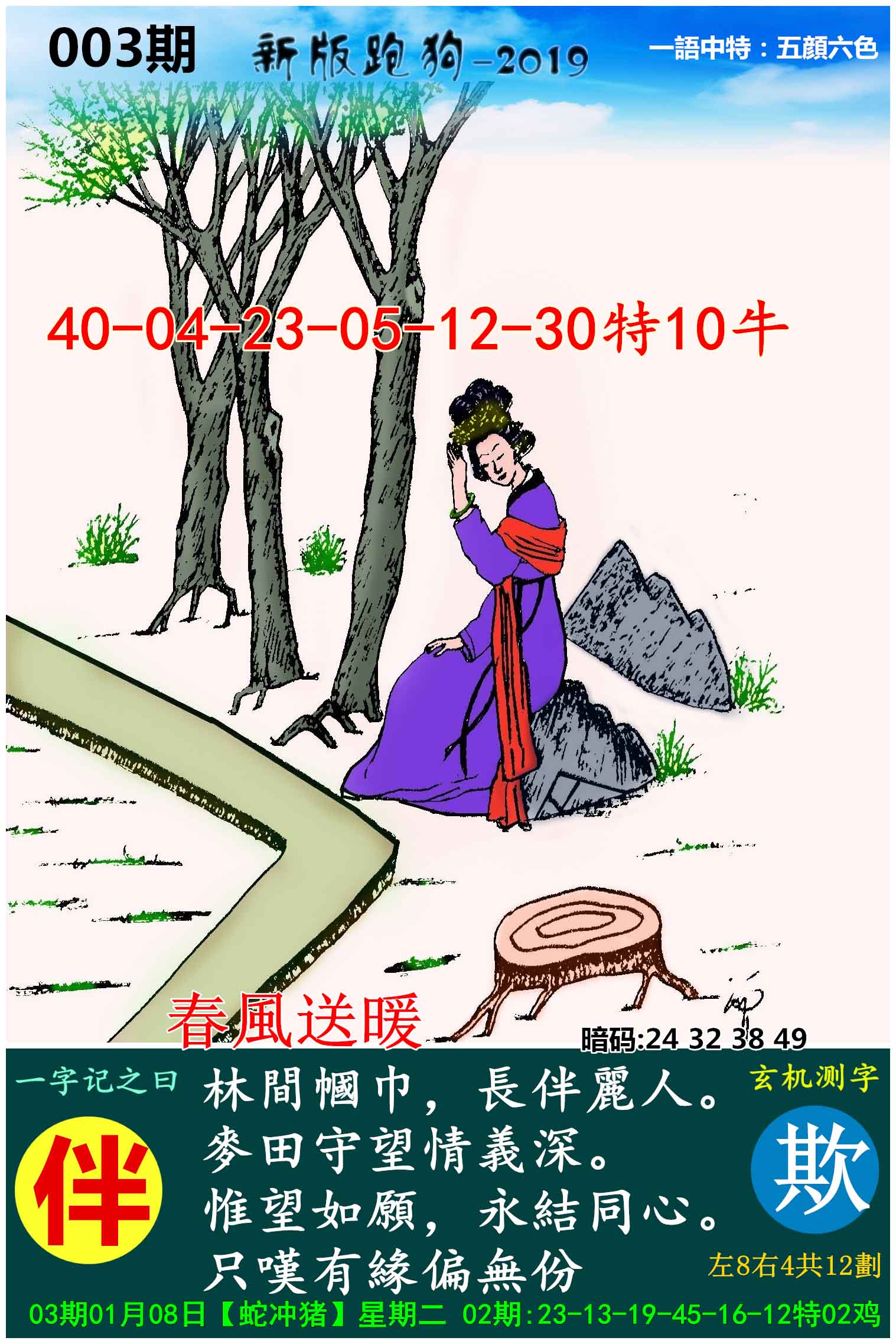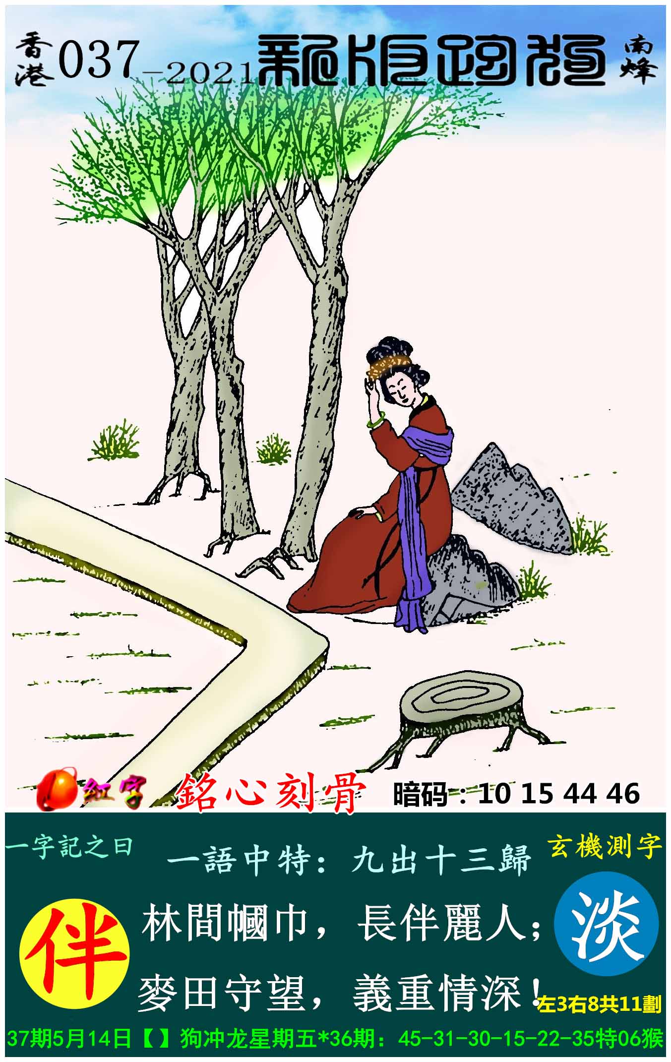 037期:新版跑狗一字記之曰【伴】玄機測字:《淡》