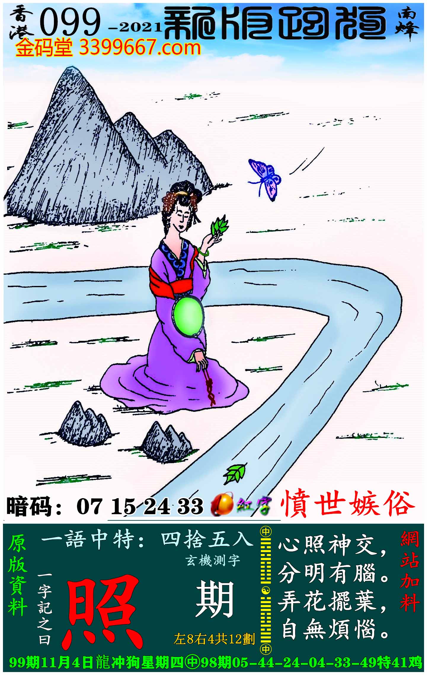 099期新版跑狗一字記之曰:【照】