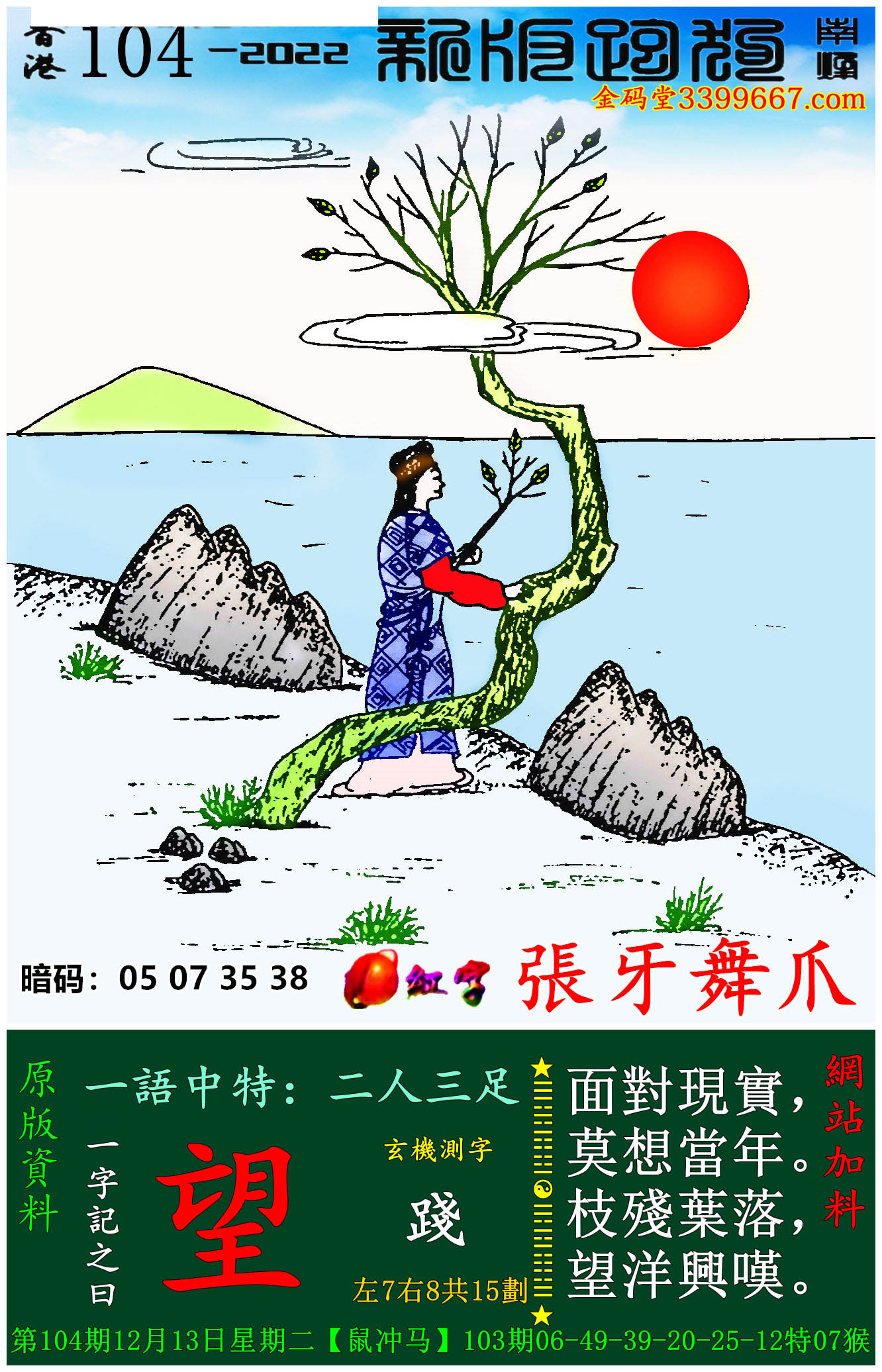 104期:新版跑狗一字記之曰【望】玄機測字:《踐》