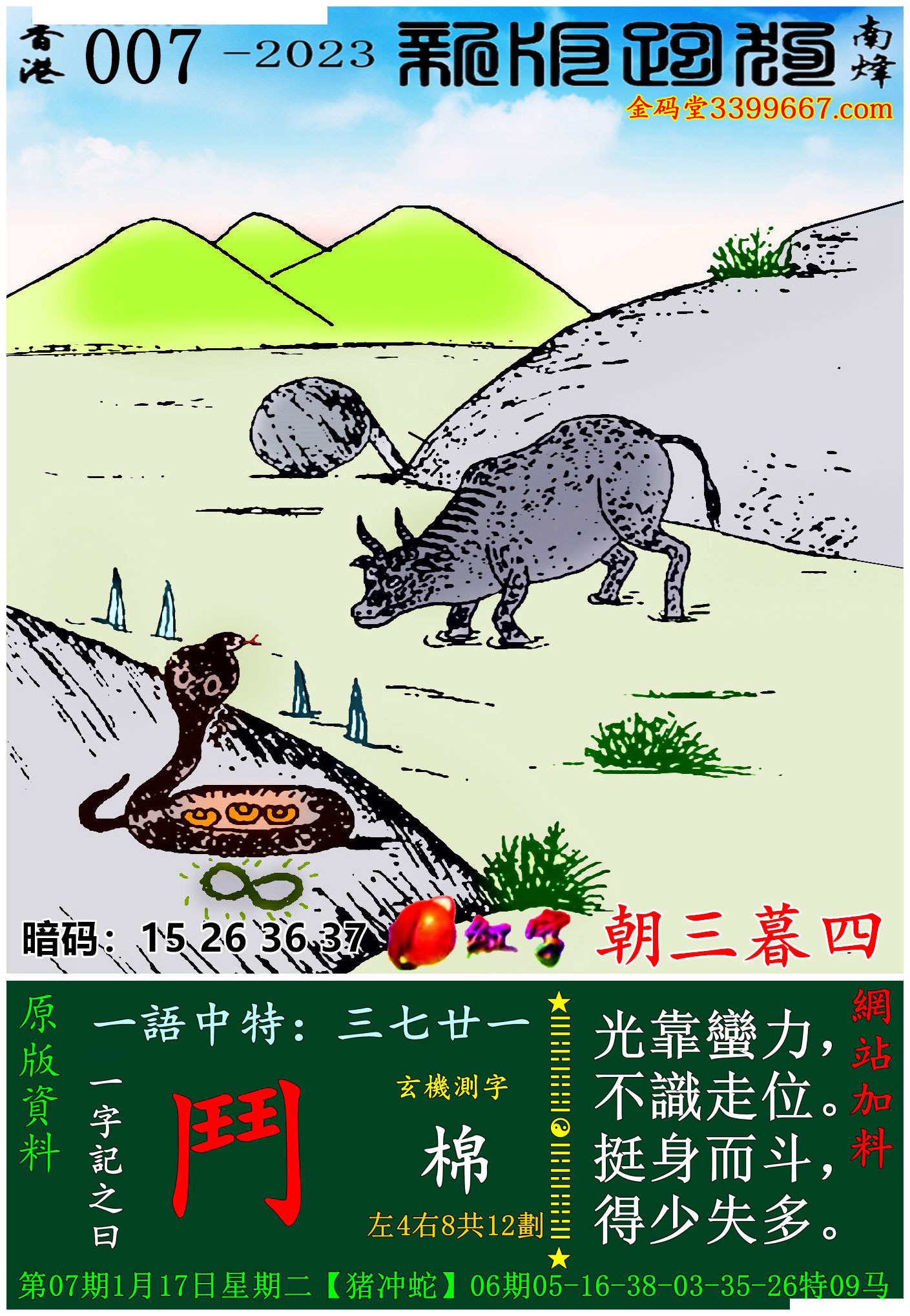 007期:新版跑狗一字記之曰【鬥】玄機測字:《棉》