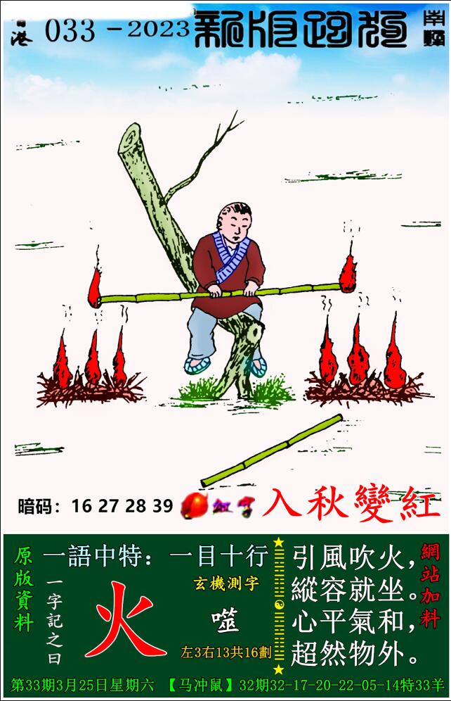 033期:新版跑狗一字記之曰【火】 玄機測字:《噬》