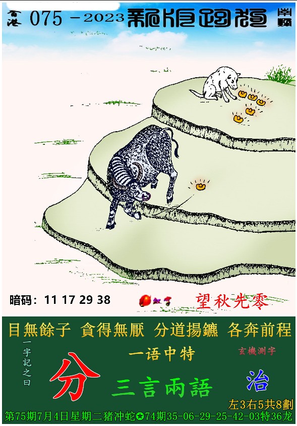 075期:新版跑狗一字記之曰【分】 玄機測字:《治》