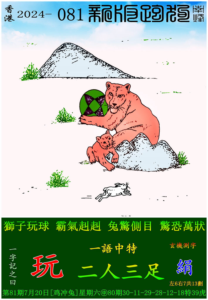 081期新版跑狗一字記之曰:【玩】
