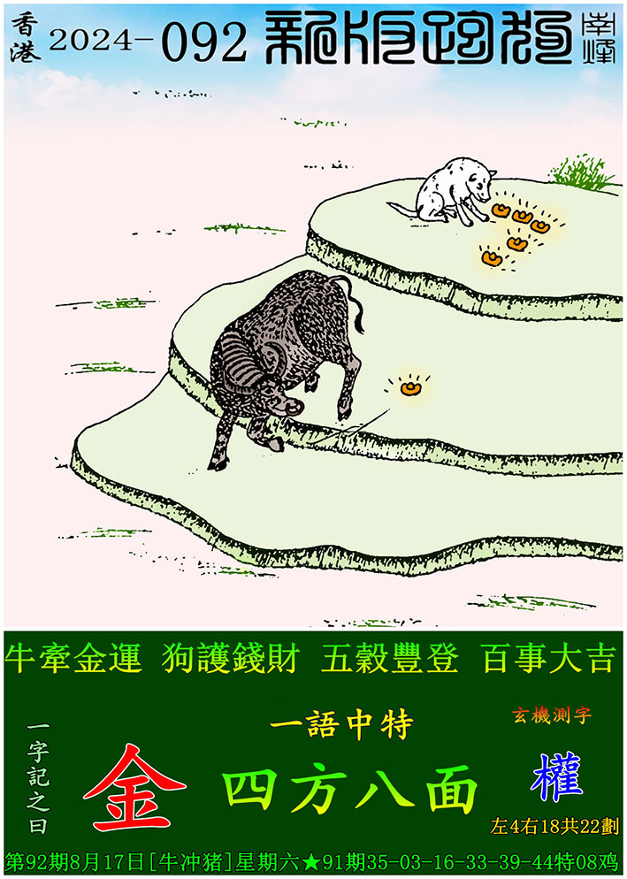 092期:新版跑狗一字記之曰【金】 玄機測字:【權】