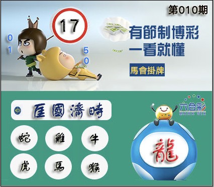 010期正版彩图挂:17 爆:龙 挂牌成语:匡国济时 挂牌出肖:蛇鸡牛虎马猴