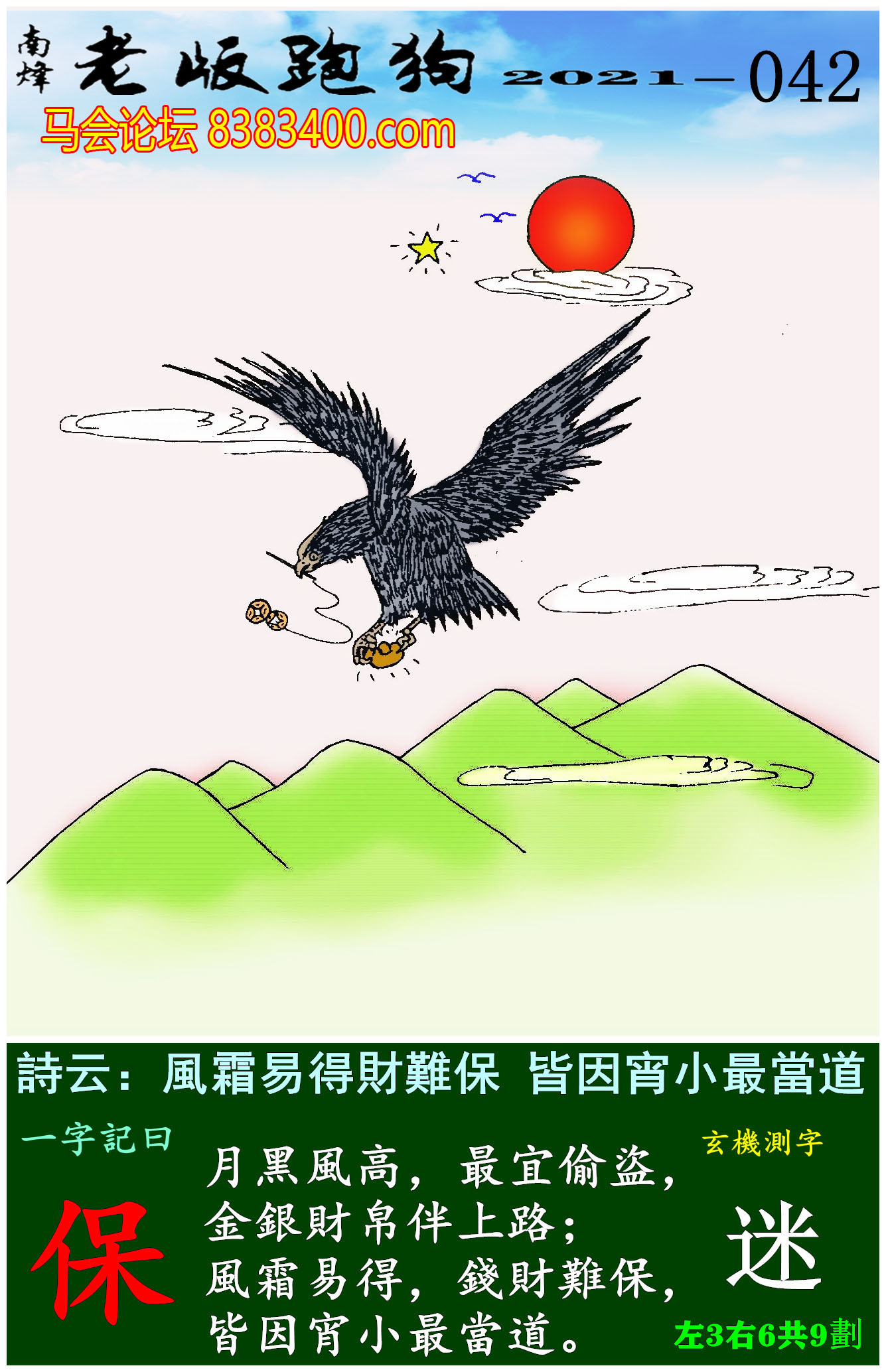 主题 : 042期老版跑狗一字記之曰:【保】玄機測字:《迷》