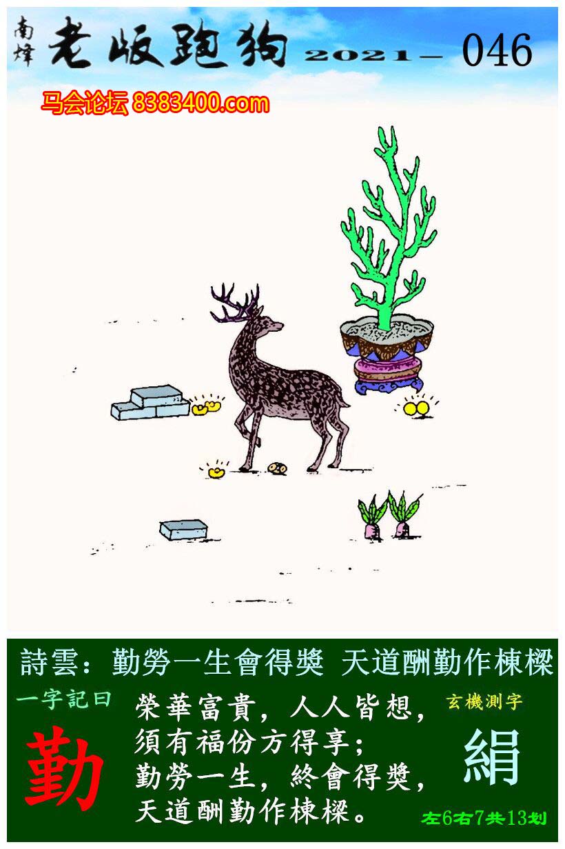046期老版跑狗一字記之曰:【勤】