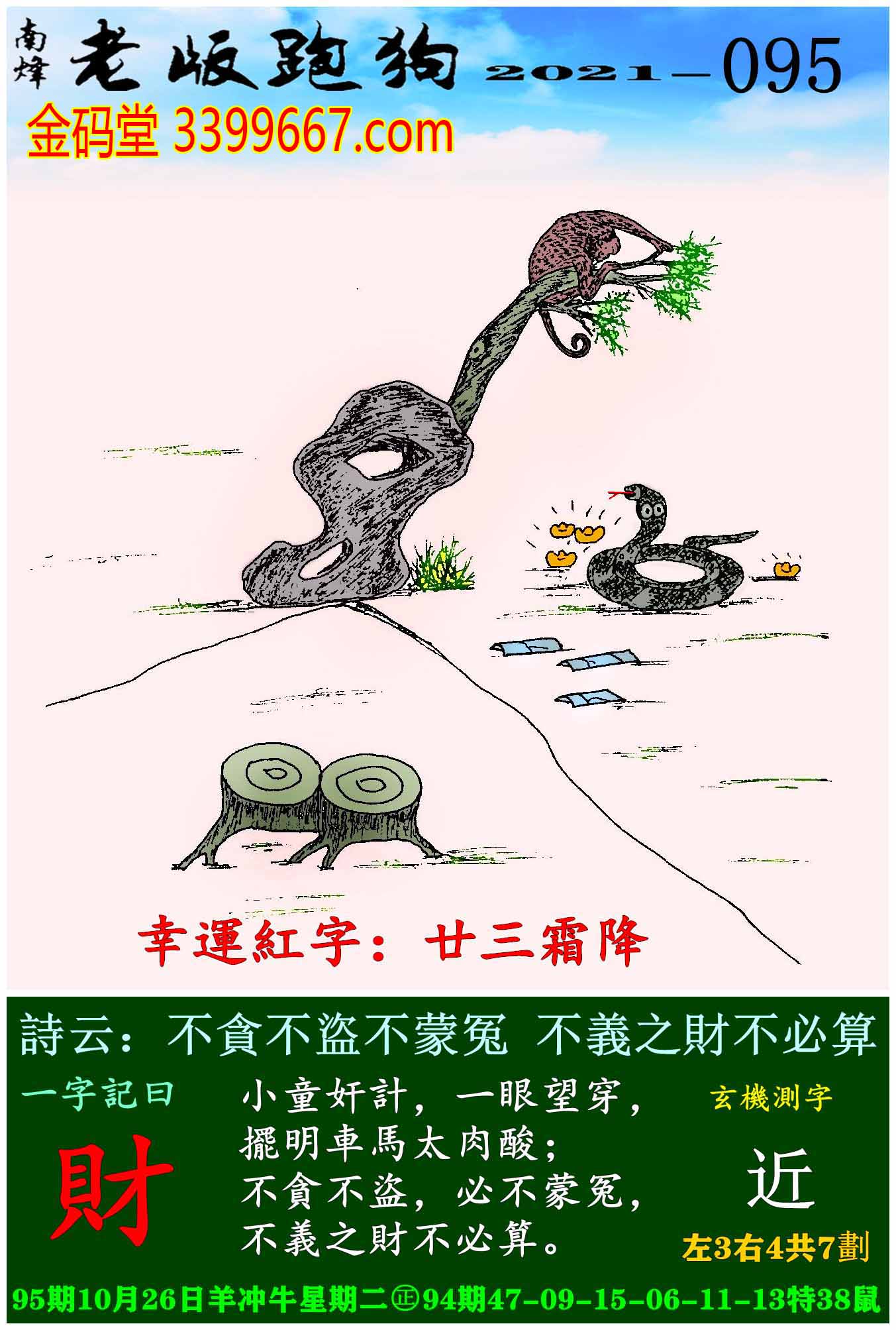 主题 : 095期老版跑狗一字記之曰:【財】玄機測字:《飲》