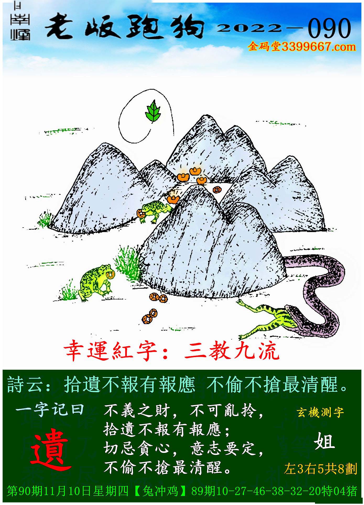 090期老版跑狗一字記之曰:【遺】玄機測字:《姐》