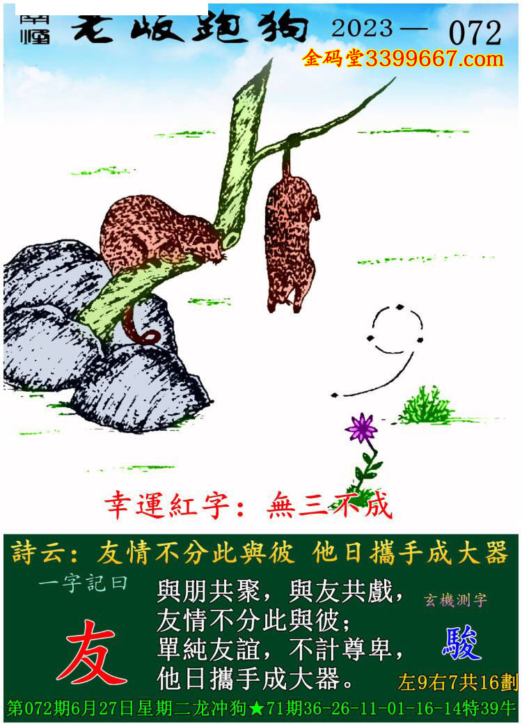 072期老版跑狗一字記之曰:【友】