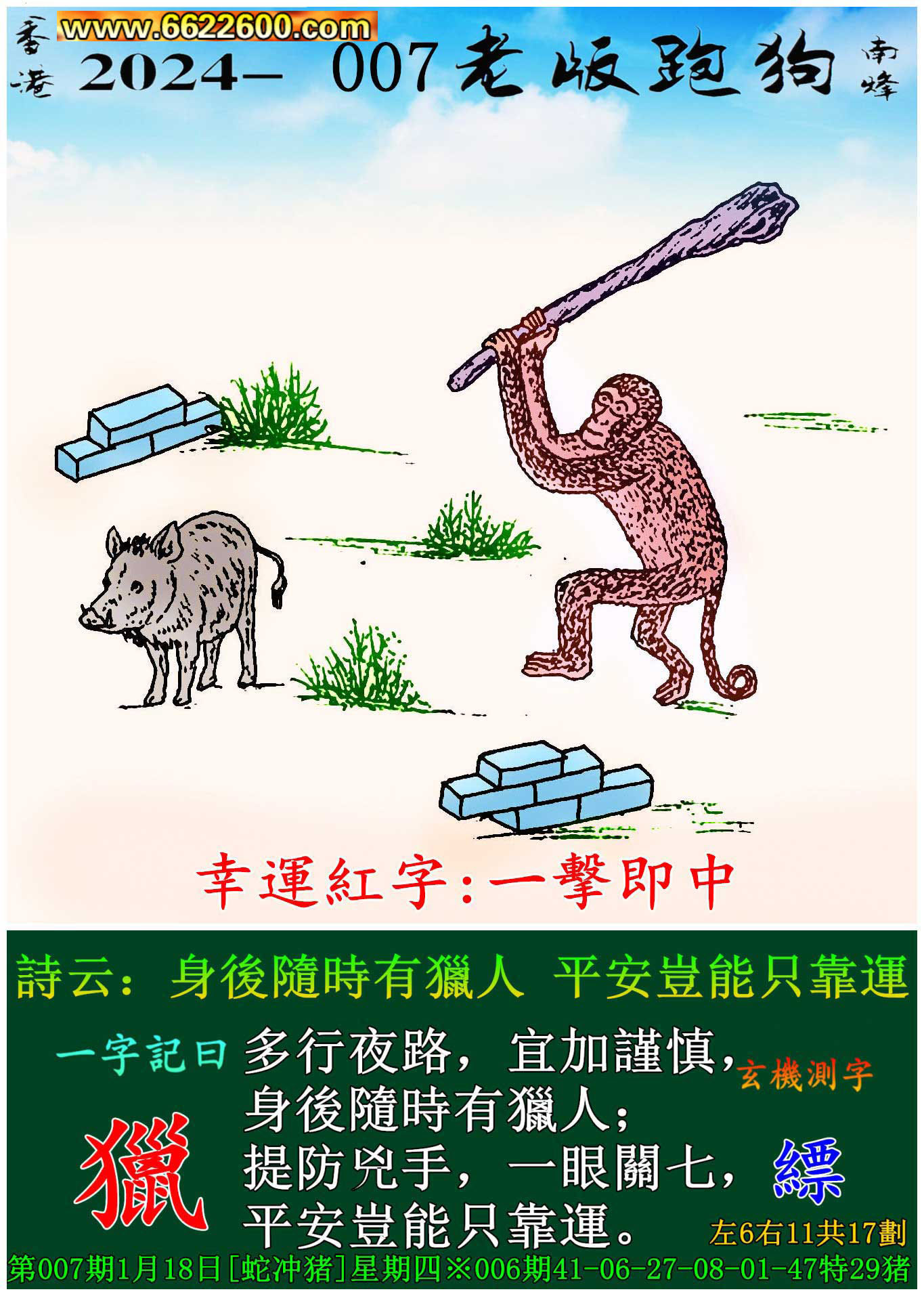 007期老版跑狗一字記之曰: 【獵】
