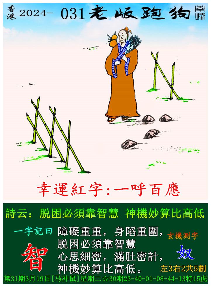 主题 : 031期老版跑狗一字記之曰:【智】 玄機測字:《奴》