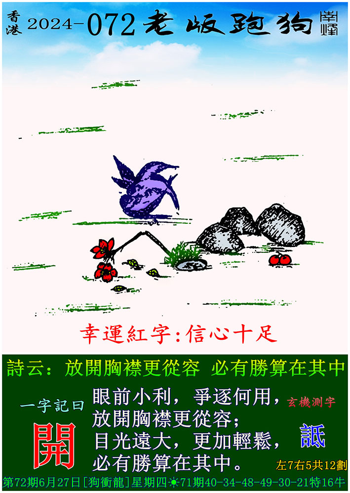 072期老版跑狗一字記之曰:【開】