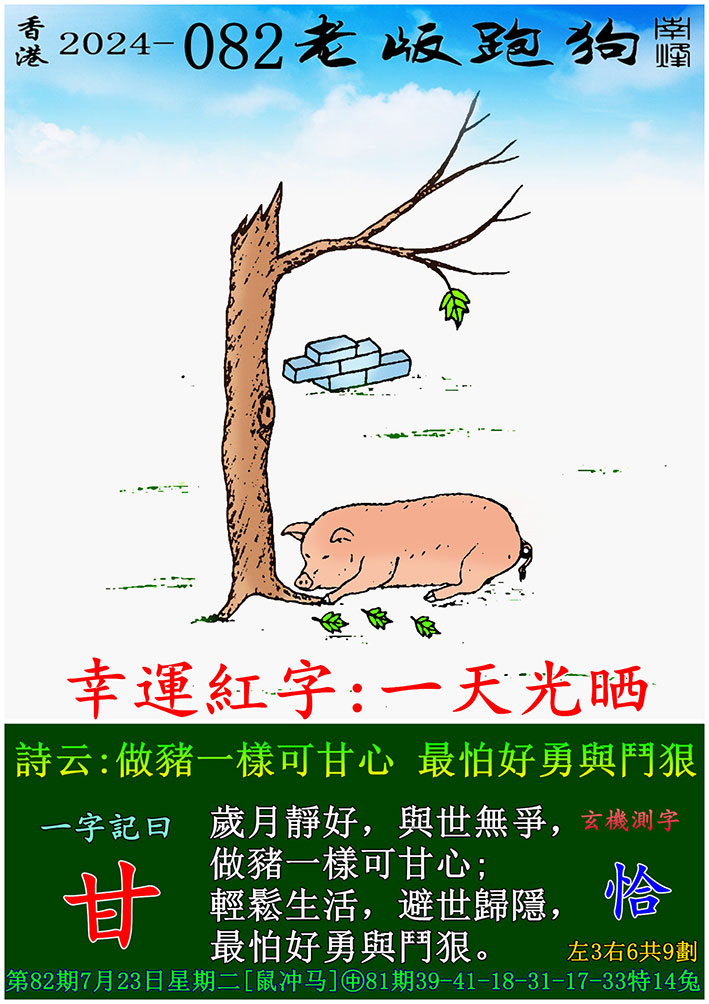 主题 : 082期老版跑狗一字記之曰:【甘】 玄機測字:《恰》
