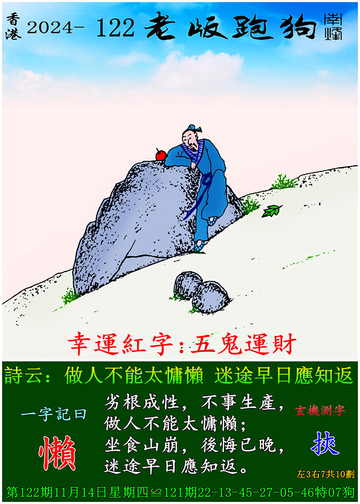 122期老版跑狗一字記之曰:【懶】 玄機測字:《挾》
