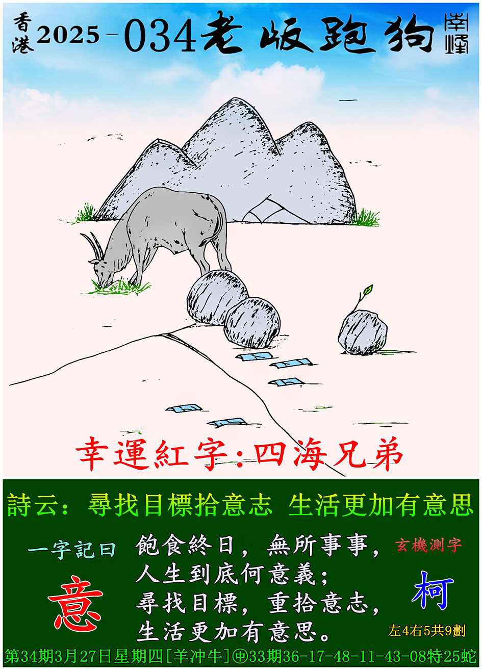 034期老版跑狗一字記之曰:【意】