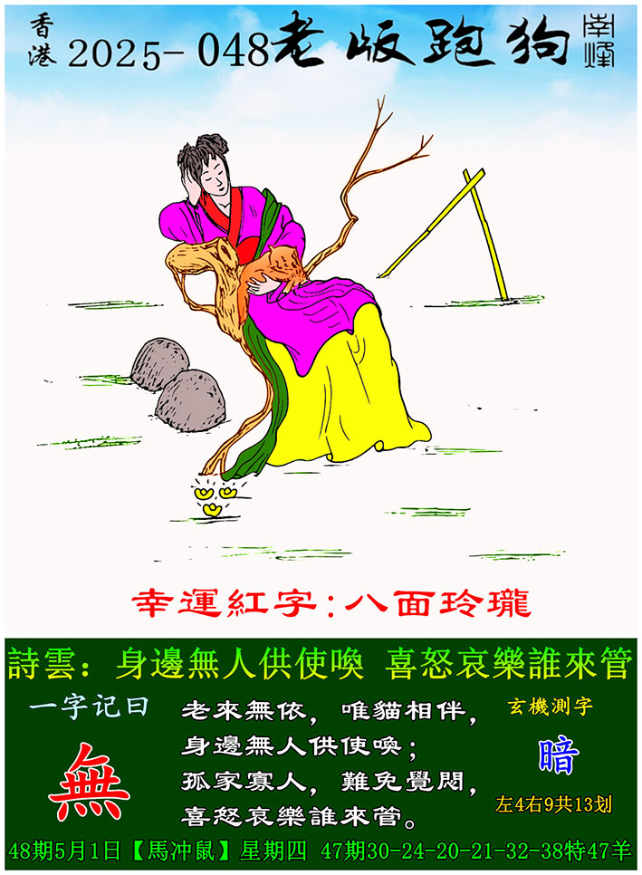 048期老版跑狗一字記之曰:【無】 玄機測字:《暗》