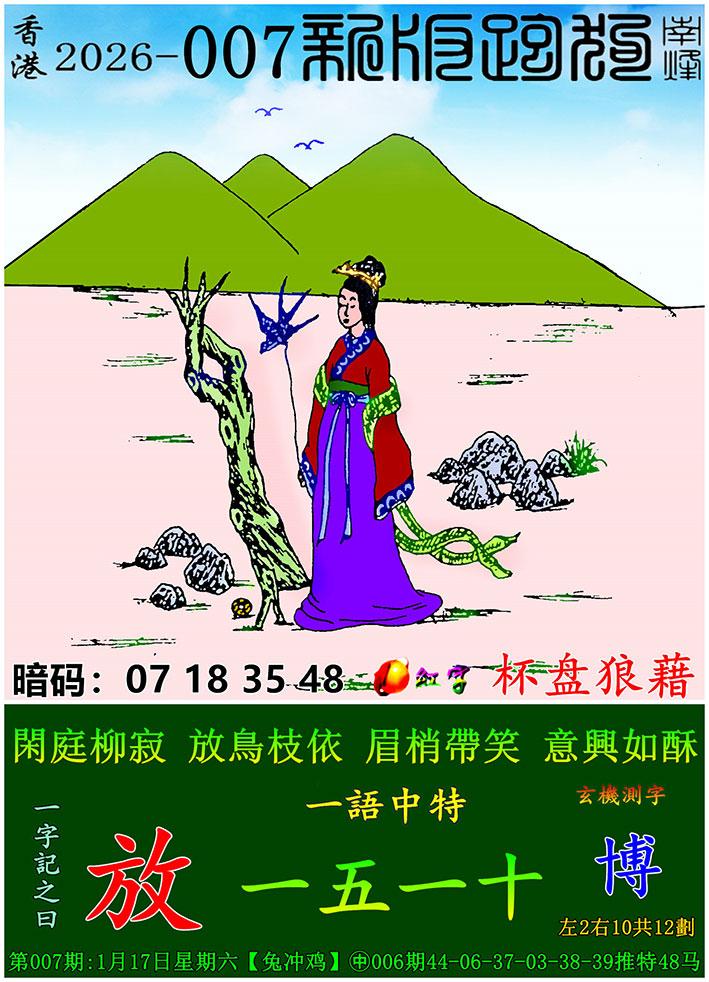 007期老版跑狗一字記之曰:【想】 詩雲:摩登思想非昔比,不婚不
