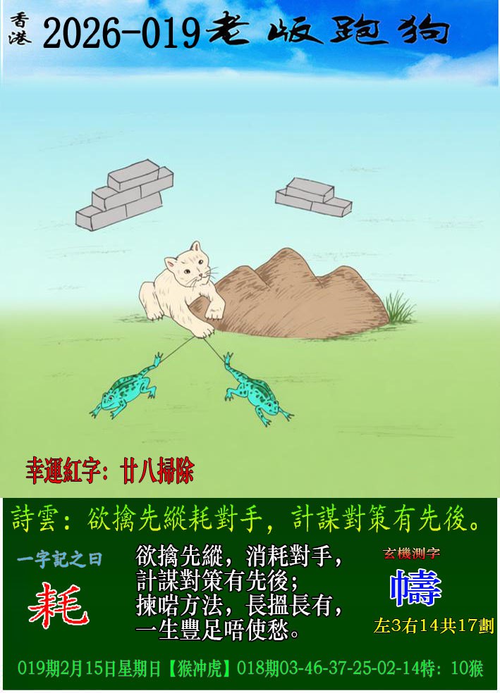 主题 : 019期老版跑狗一字記之曰:【耗】 玄機測字:《幬》