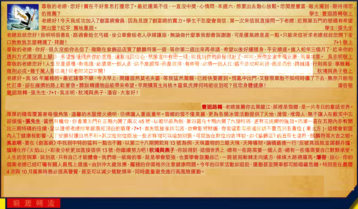 【2】.老總好!今天我成功加入了創富網會員;因為見證了創富網的實力。學生不怎麼會寫信;第一次來信 就直接問一下老總:近期第五門的號碼有希望開出麼?紅字:舊地重遊。 學生:張先生