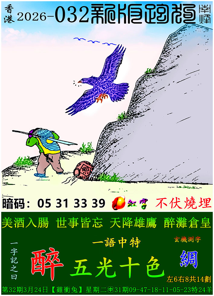 032期:新版跑狗一字記之曰【醉】 玄機測字:【綢】