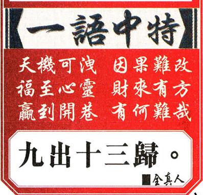一語中特:【九出十三歸】