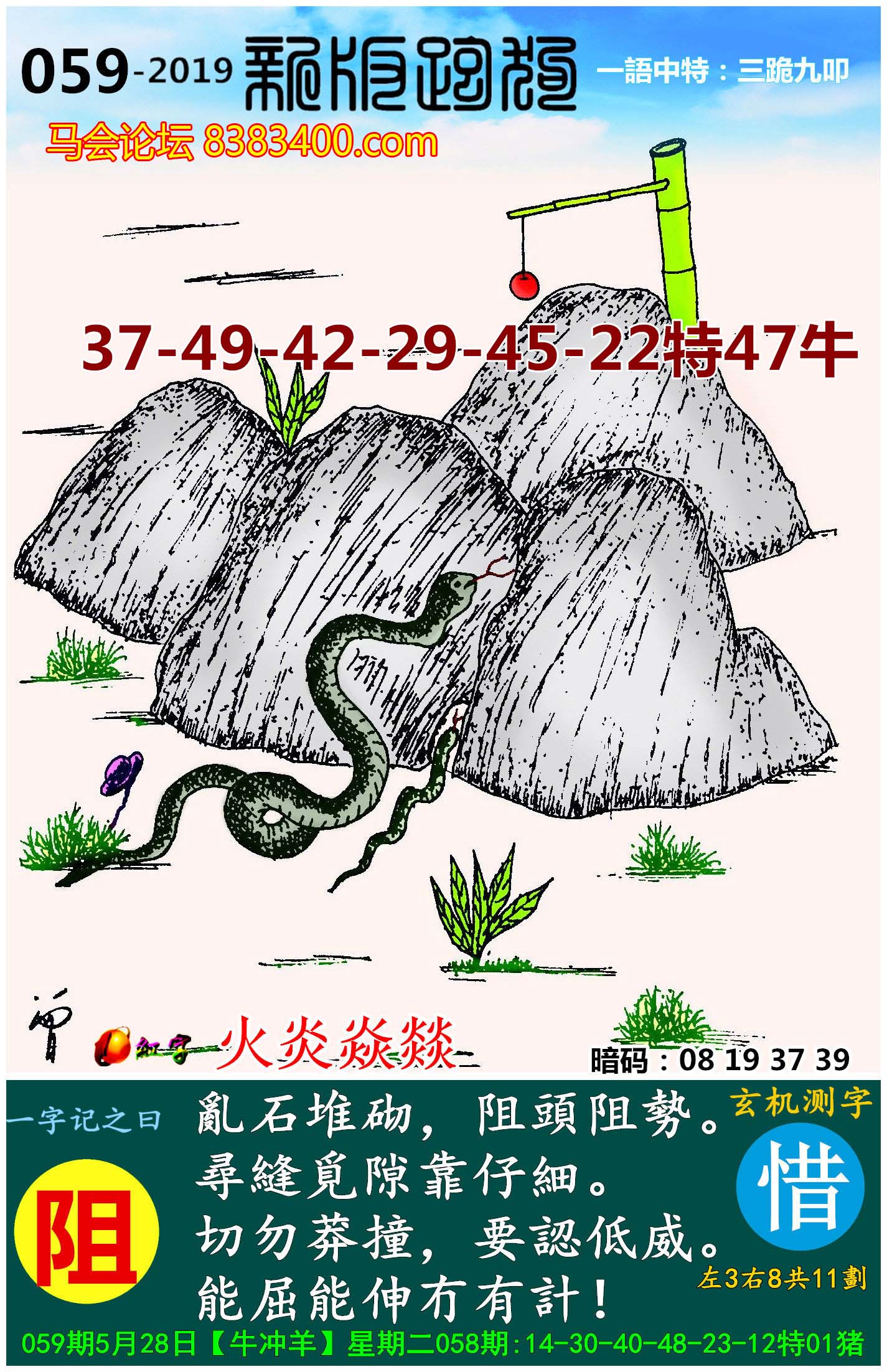 030期新版跑狗一字記之曰:【阻】