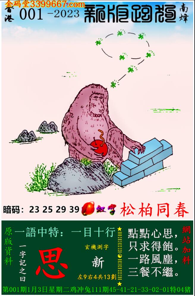 001期新版跑狗一字記之曰:【思】