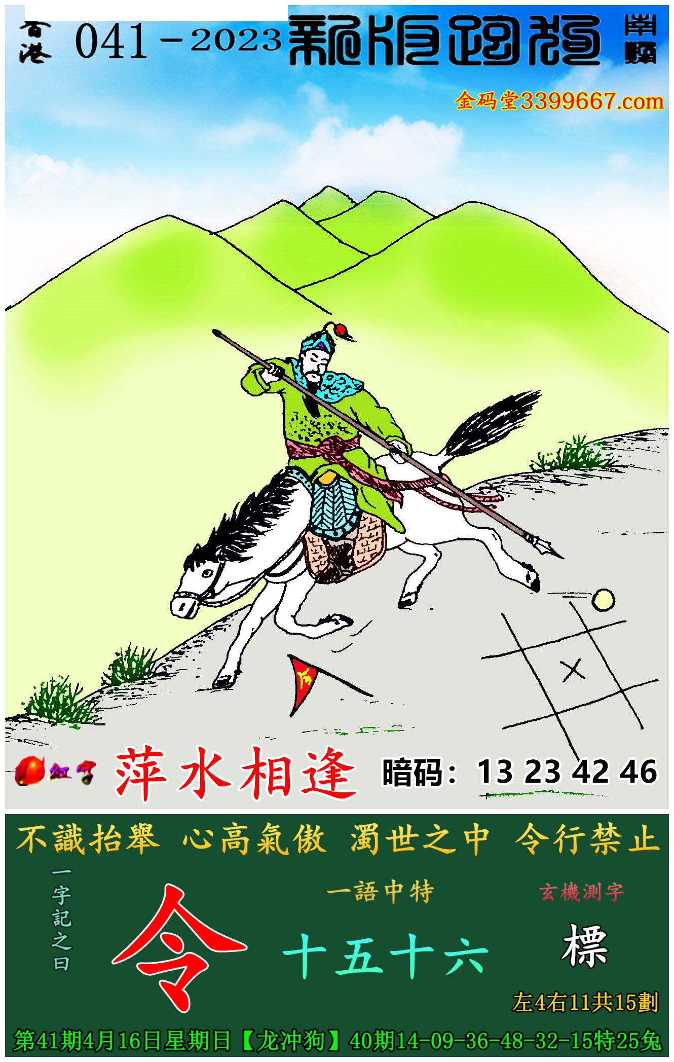 041期新版跑狗一字記之曰:【令】