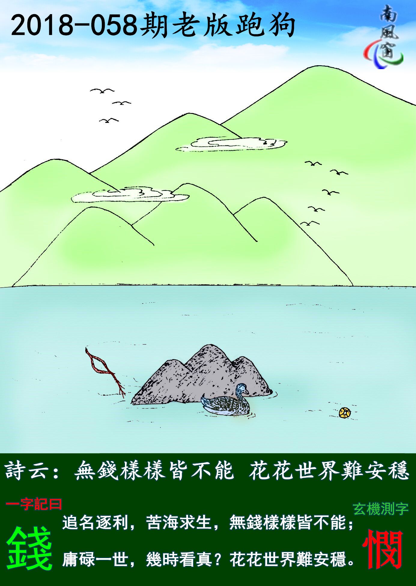 主题 : 058期:老版跑狗一字記之曰:【錢】玄機測字《憫》