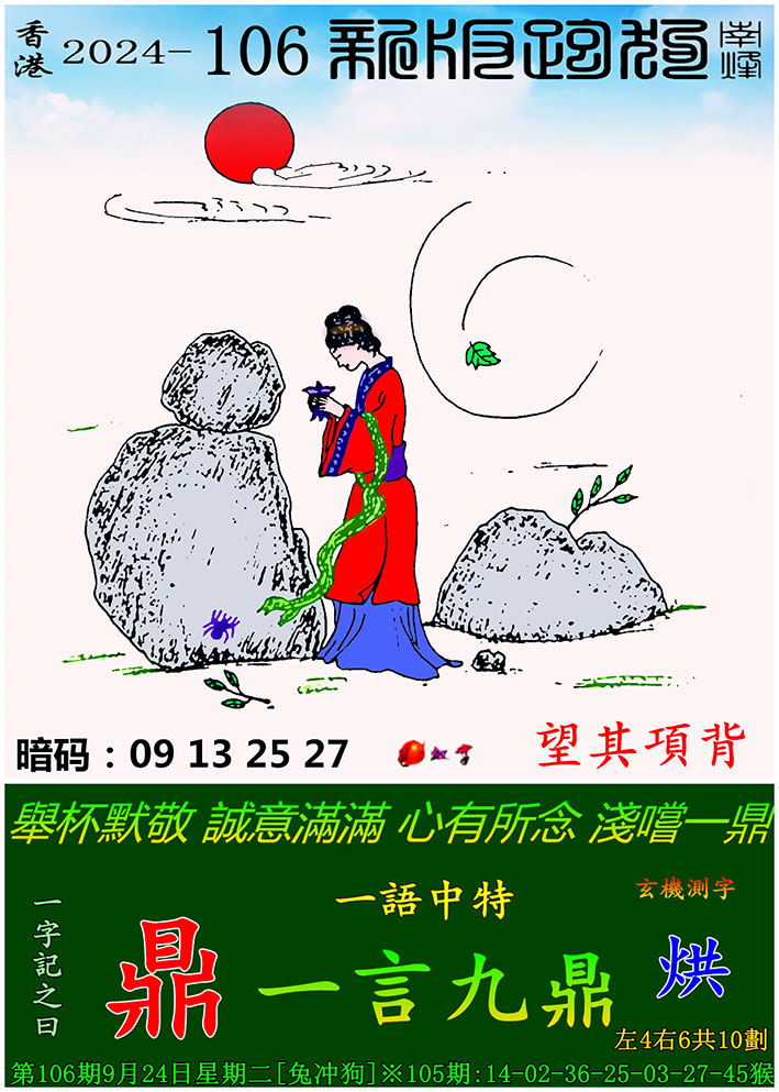 主题 : 106期:新版跑狗一字記之曰【鼎】 玄機測字:【烘】