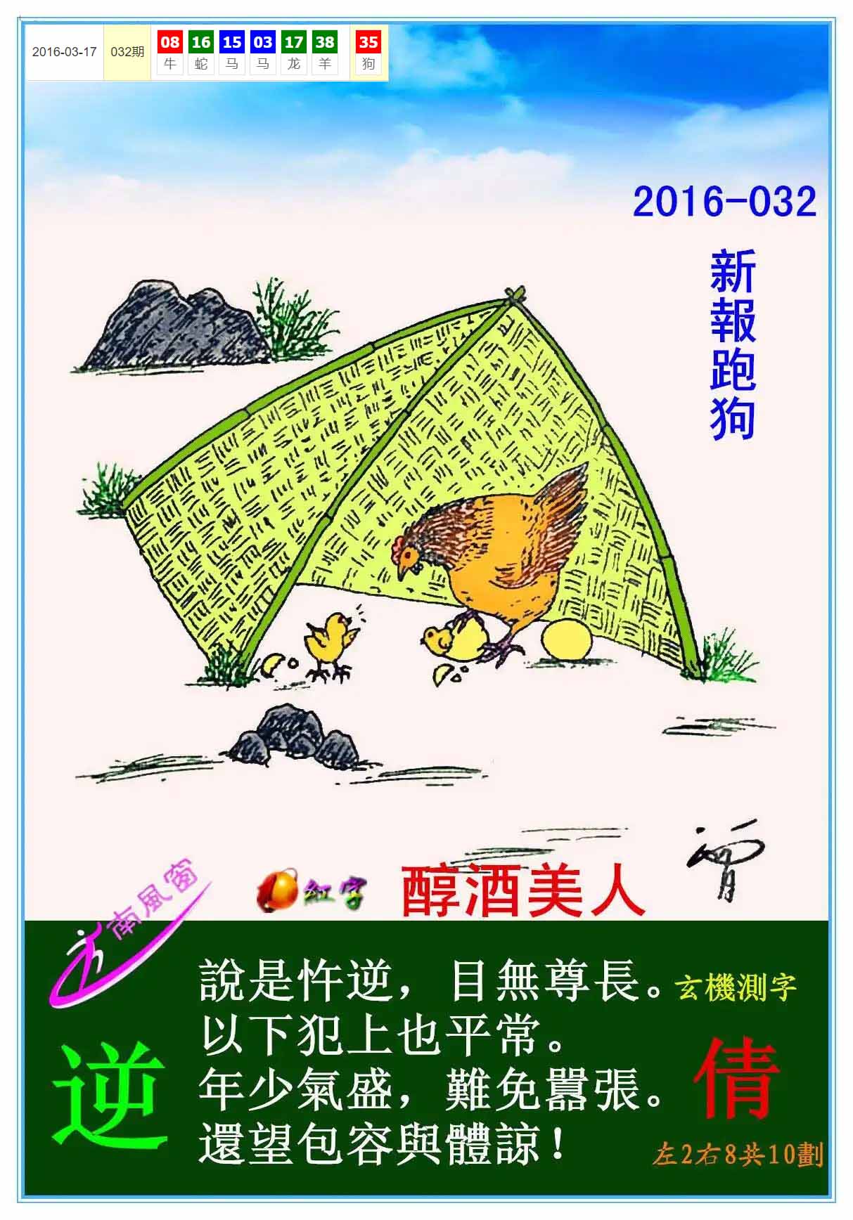 主题 : 134期:新版跑狗一字記之曰【哺】 玄機測字:【純】
