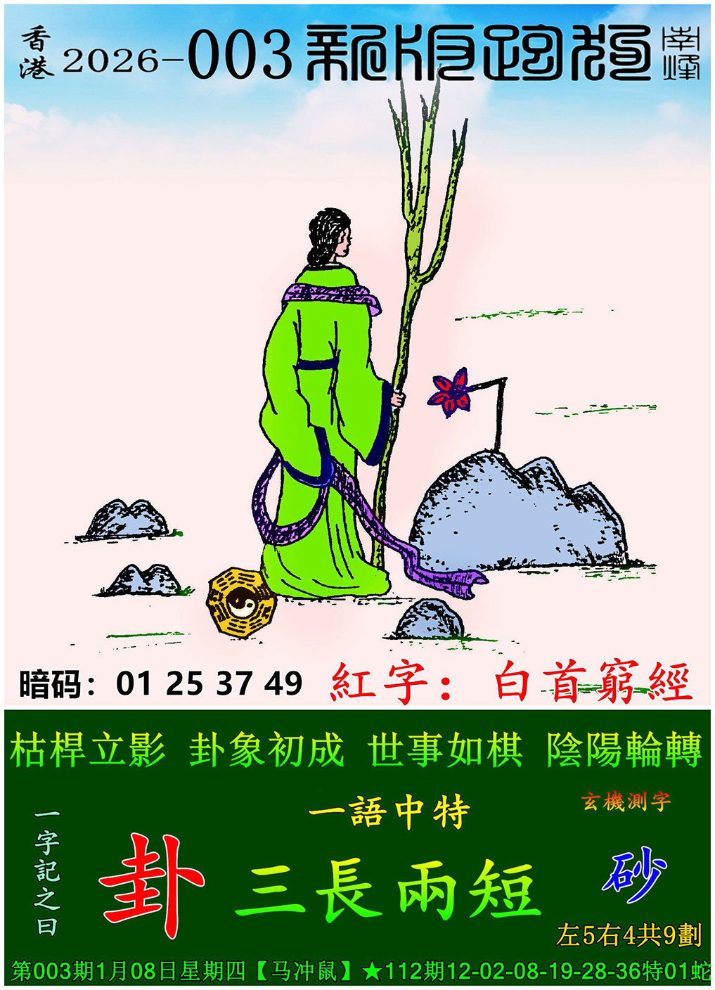 003期:新版跑狗一字記之曰【卦】 玄機測字:【砂】