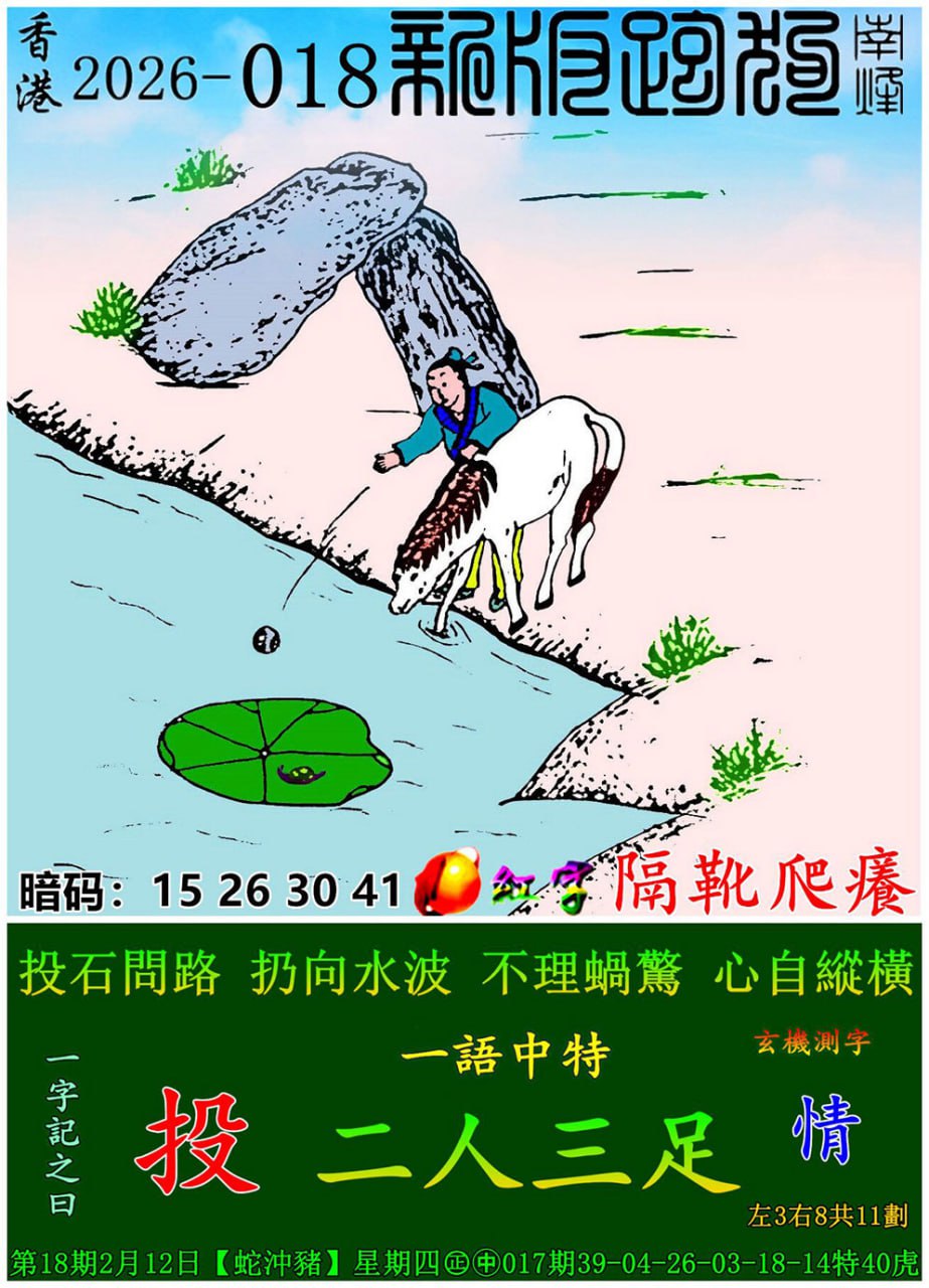 018期:新版跑狗一字記之曰【投】 玄機測字:【情】