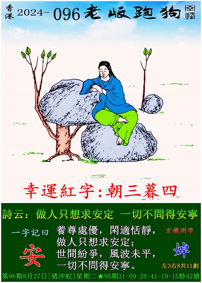 096期老版跑狗一字記之曰:【安】 玄機測字:《婥》
