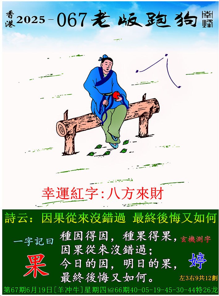 067期老版跑狗一字記之曰:【果】 玄機測字:《婷》