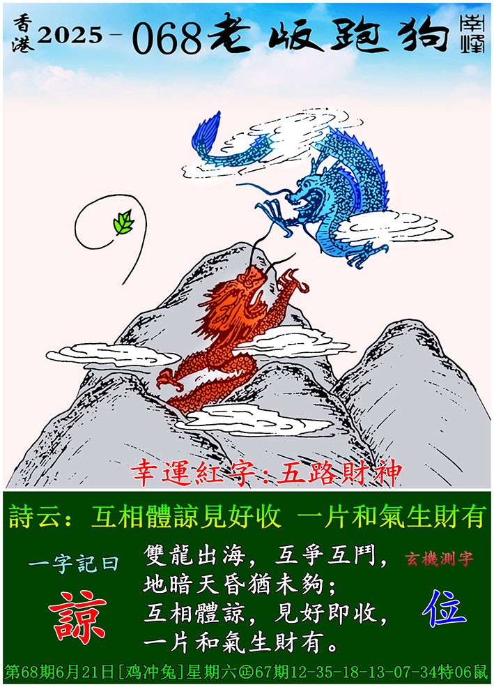 068期老版跑狗一字記之曰:【諒】 玄機測字:《位》