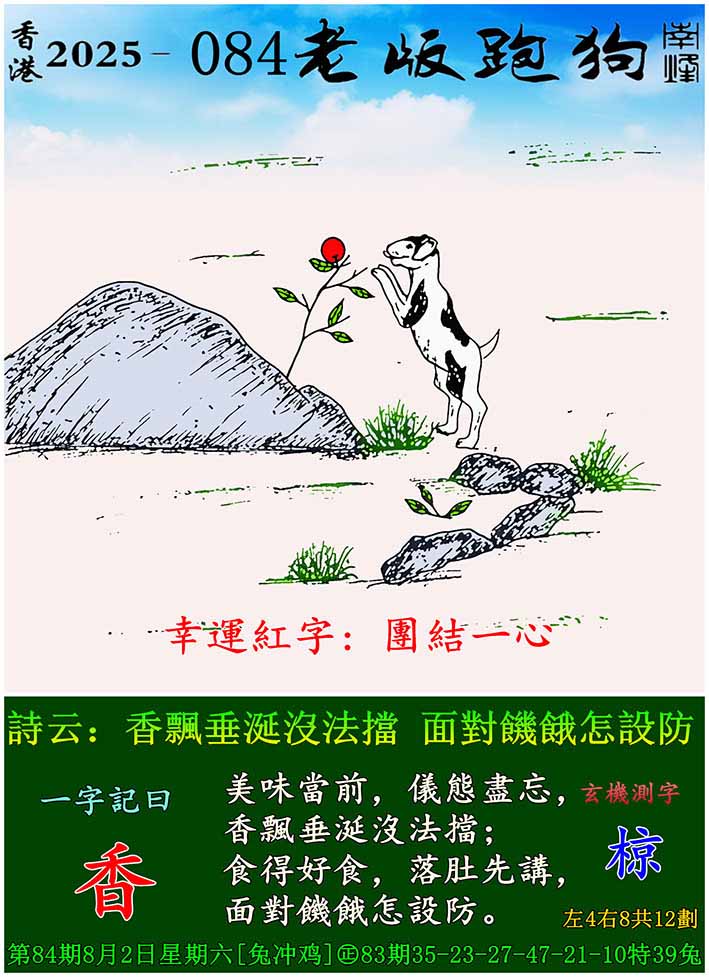 084期老版跑狗一字記之曰:【香】