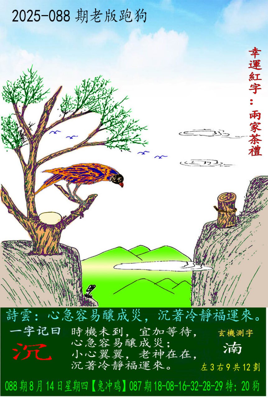 主题 : 088期老版跑狗一字記之曰:【沉】 玄機測字:《湳》