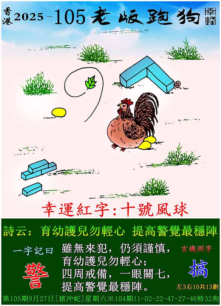 105期老版跑狗一字記之曰:【警】 玄機測字:《搞》