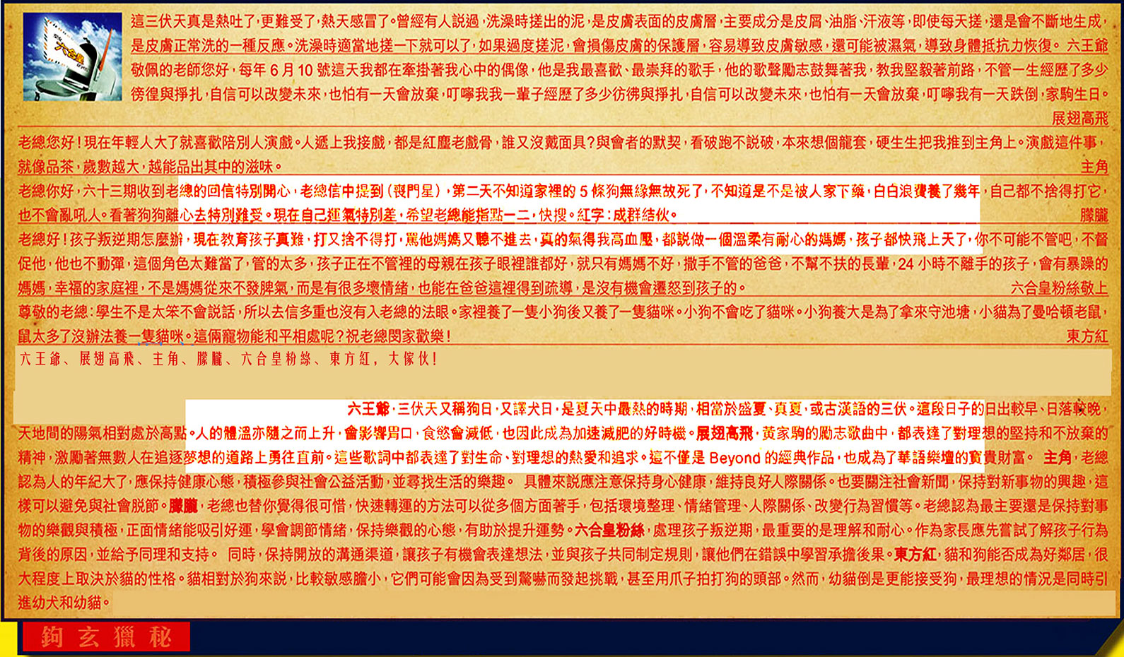 六王爺、展翅高飛、主角、朦朧、六合皇粉絲、東方紅,大傢伙!